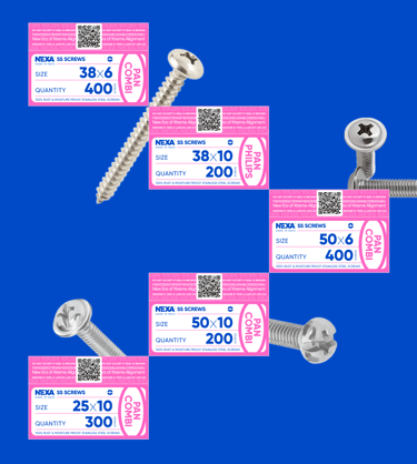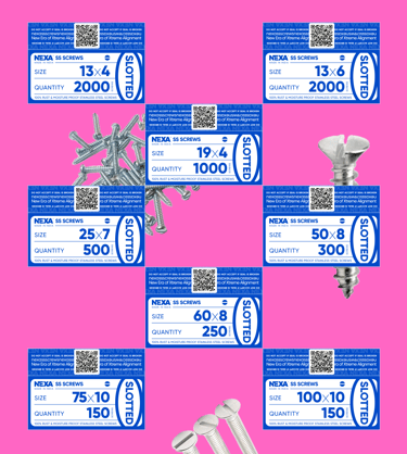Nexa SS Screw offers wide range of screws in India ideally suitable for all type of wood, plastic, masonry and sheet metal. We provide complete range of woodworking and building and construction screw, self-drilling screws, self-tapping screw, handle fixing screws and roofing screws.